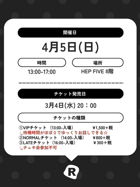 チェキ会参加不可 16時以降入場可能・16時半最終入場受付となります。